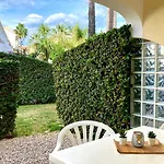 La propiedad ofrece una terraza y una zona de estar con vistas a la piscina y comodidades como climatizador. Los huéspedes tienen a su disposición un sofá, además de diversas opciones multimedia, como TV y TV de pantalla plana con canales vía satélite. Para mayor comodidad, este apartamento dispone de un inodoro separado de la ducha y una bañera.